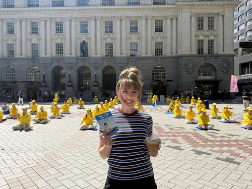 Cherie ha osservato gli esercizi per circa mezz'ora, e ha detto che la scena pacifica in una città così affollata era meravigliosa, e che se più persone potessero imparare la Falun Dafa e i principi di Verità-Compassione-Tolleranza, il mondo diventerebbe un posto migliore. “Questo è particolarmente importante per le giovani generazioni”.