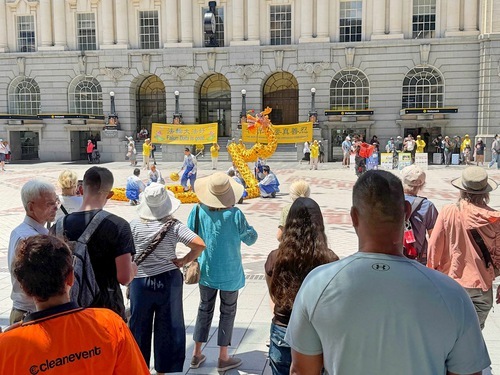 Staines ha ringraziato i praticanti per aver presentato la Falun Dafa al pubblico, e ha affermato che la pratica non solo può migliorare la mente e il corpo delle persone, ma seguire i principi guida può aiutare a costruire una comunità migliore, e che voleva saperne di più sulla Falun Dafa.