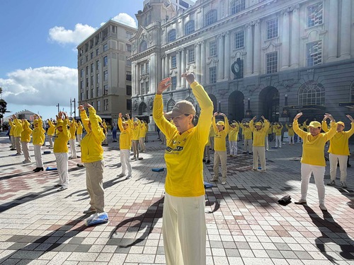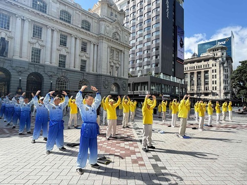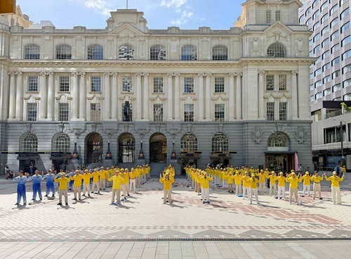 Il 31 gennaio, i praticanti hanno eseguito gli esercizi a Commercial Bay, Auckland