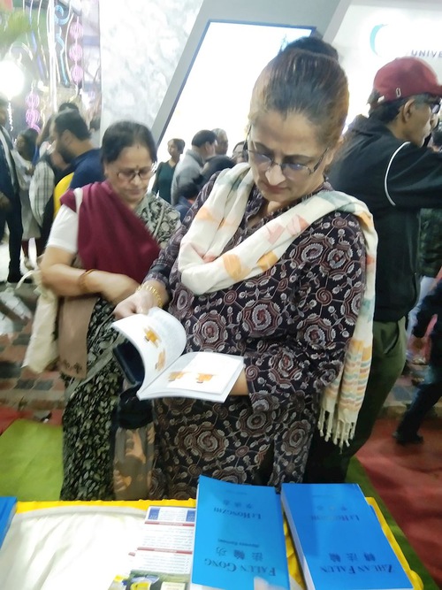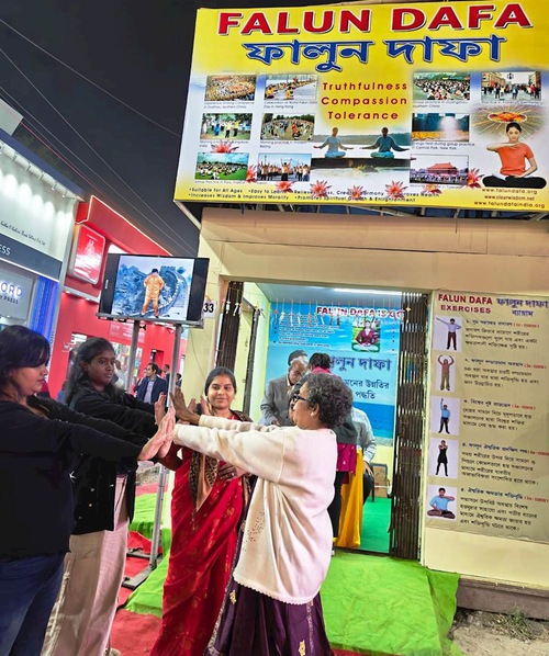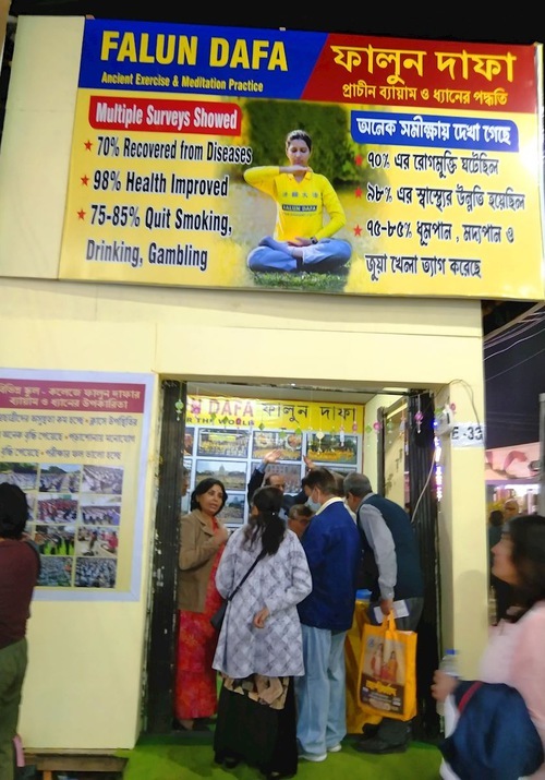 (Minghui.org) Dallo scorso 22 gennaio al 3 febbraio, i praticanti della Falun Dafa hanno partecipato alla 49ª Fiera Internazionale del Libro di Calcutta, che è la più grande fiera del libro non commerciale al mondo, e la più grande fiera del libro in Asia. Quest'anno, grazie alla nuova stazione della metropolitana vicino alla sede della fiera, l'evento ha registrato un'affluenza record di 3,5 milioni di visitatori. La fiera ospita anche una vasta gamma di programmi culturali legati al mondo dei libri, come dibattiti letterari, presentazioni di libri e spettacoli per celebrare il vivace patrimonio letterario di Calcutta.