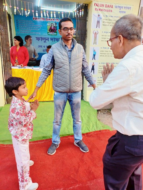 Molti insegnanti e studenti hanno visitato la fiera del libro il secondo giorno, il preside di una scuola, Abhishek Roy, ha parlato con i praticanti e ha appreso che dopo aver praticato gli esercizi della Falun Dafa, gli studenti hanno migliorato la loro concentrazione, hanno ottenuto ottimi risultati negli esami e hanno smesso di saltare le lezioni. Roy ha elogiato i principi della Falun Dafa.