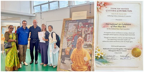 Due donne Maori hanno affermato di sentirsi rigenerate dopo aver visitato la mostra d'arte. Hanno anche provato gli esercizi della Falun Dafa e hanno detto di aver sentito una forte energia avvolgere le loro braccia mentre eseguivano il secondo esercizio.