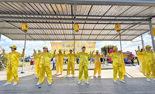 I praticanti dimostrano gli esercizi della Falun Dafa durante il Festival