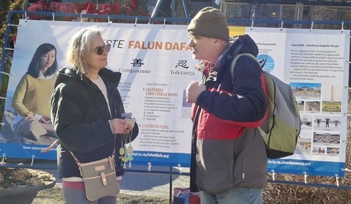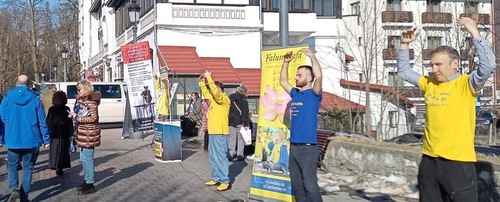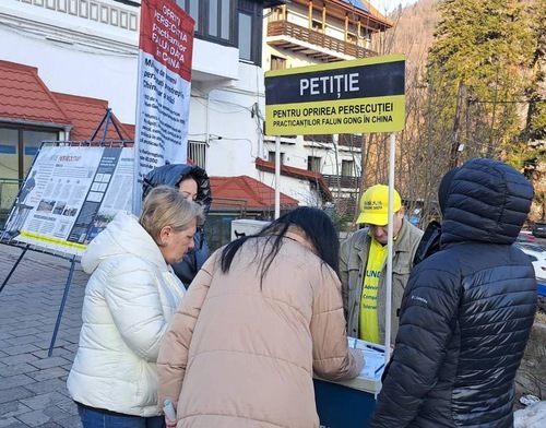 Dal 27 febbraio al 1° marzo, alcuni praticanti hanno allestito uno stand informativo a Sinaia, in Romania. Hanno dimostrato gli esercizi e hanno parlato alla gente della Falun Dafa