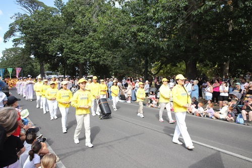 (Minghui.org) Il 9 marzo scorso, i praticanti hanno partecipato alla Parata del Festival delle Begonie a Ballarat per presentare la Falun Dafa. Gli spettatori hanno potuto assistere alla dimostrazione degli esercizi, all’esibizione dei tamburini e alla danza del drago.
