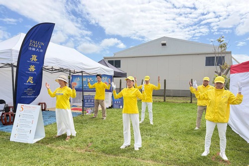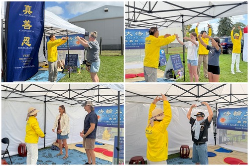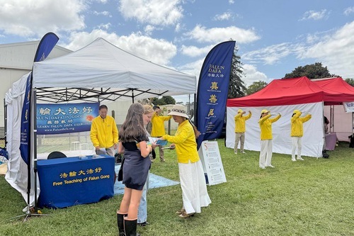 I praticanti hanno allestito uno stand e presentato la Falun Dafa (nota anche come Falun Gong) al pubblico. La loro dimostrazione degli esercizi ha attirato molti visitatori, e alcune persone li hanno imparati sul posto. Un uomo ha affermato di aver sentito una forte energia mentre eseguiva gli esercizi.
