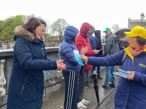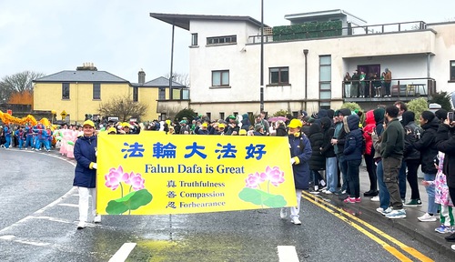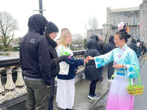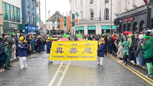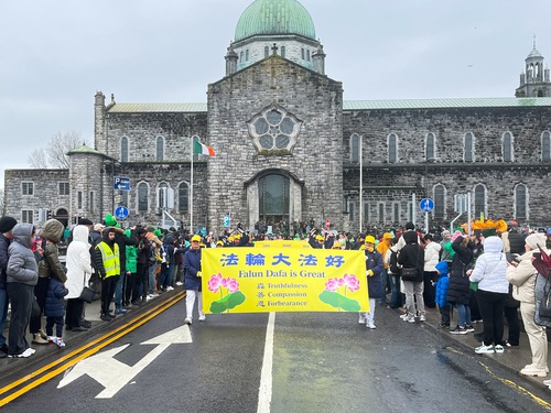 (Minghui.org) Il giorno di San Patrizio viene celebrato in tutta l'Irlanda con parate e feste. Galway ha tenuto la sua parata annuale il 17 marzo, nonostante una leggera pioggia mattutina. Come negli anni passati, questo non ha smorzato l'entusiasmo della gente.