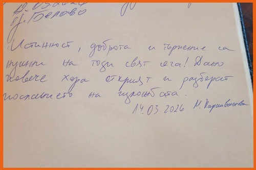 Maria Karaivanova, un'insegnante titolare di una scuola privata a Sofia, è rimasta impressionata dai valori morali promossi dagli artisti. “Penso che la sincerità, la gentilezza e la pazienza sono qualità di cui il mondo ha bisogno in questo momento!”, ha scritto nel libro degli ospiti “che sempre più persone possano scoprire e comprenderne il messaggi”.