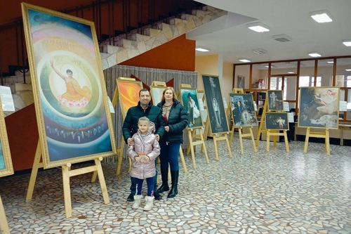 La famiglia Sestrimski ha visitato la mostra ed era interessata a conoscere meglio la pratica della Falun Dafa. Maria Sestrimska ha condiviso con i presenti la sua interpretazione del dipinto ‘Mettere in moto il cosmo’, uno dei suoi preferiti: “Penso che raffiguri la purificazione dell'anima attraverso tutti i livelli della coltivazione”.