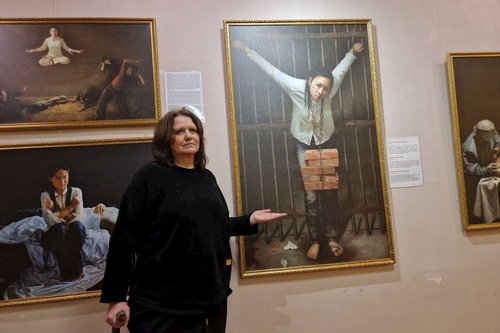 Da intenditrice, la donna, ha elogiato le opere, definendole “di un livello pittorico eccezionale”. Ha osservato a lungo i dipinti insieme a Ivan, un futuro architetto paesaggista che l'accompagnava. Era interessata a conoscere il luogo d’esposizione dei dipinti originali, in quanto, a suo dire, sono “degni delle gallerie più prestigiose del mondo”.
