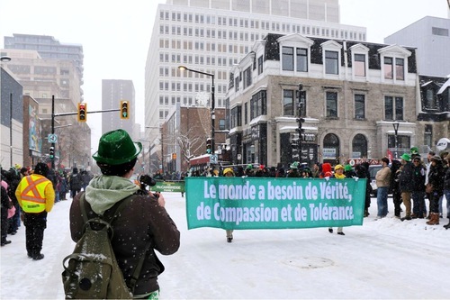 (Minghui.org) Lo scorso 22 marzo, il pubblico ha apprezzato l'esibizione della Tian Guo Marching Band alla 201ª parata di San Patrizio a Montreal. Uno spettatore ha affermato che il suo messaggio, “Verità-Compassione-Tolleranza”, “è fonte di ispirazione per tutti”.