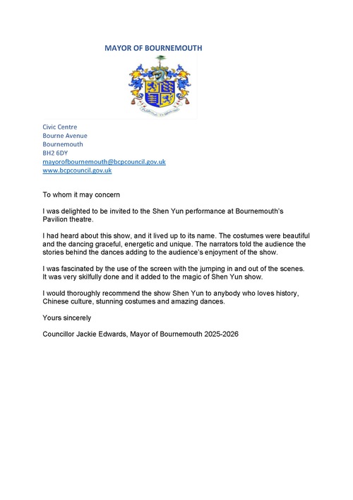 Lettera di Jackie Edwards, sindaco di Bournemouth