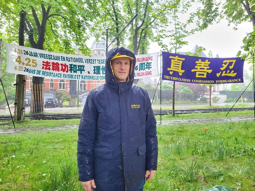 Nel corso degli anni, oltre a raccontare alle persone la sua esperienza positiva dopo aver iniziato a praticare, Wilfred ha denunciato la persecuzione della Falun Dafa e dei suoi praticanti, da parte del Partito Comunista Cinese. Lui e la sua famiglia hanno partecipato ad attività di chiarimento della verità, in tutta Bruxelles e in altre città. Una di queste attività si è svolta vicino all'ambasciata cinese in Belgio: i praticanti hanno fatto gli esercizi ed esposto striscioni, chiedendo la fine della persecuzione.