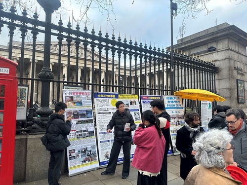 Per aiutare le persone, in particolare i turisti cinesi, a scoprire cos'è il Falun Gong e a confutare la propaganda diffamatoria del PCC, i praticanti sostano nei pressi del British Museum, un luogo di interesse popolare. La loro attività ha ricevuto un permesso dal governo locale ed è protetta dalla polizia londinese.