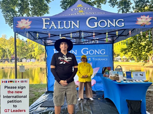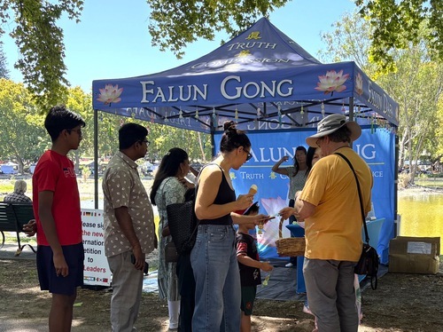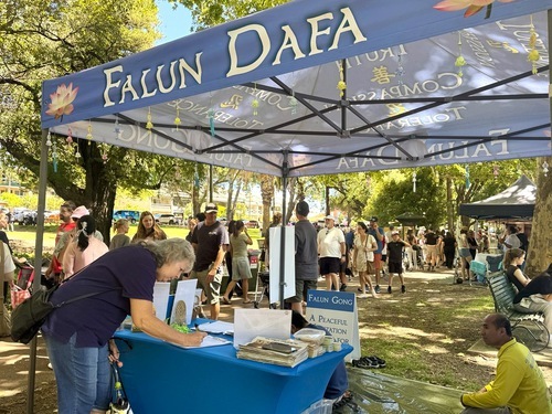 Molte persone hanno visitato lo stand della Falun Dafa, hanno ascoltato la presentazione della pratica da parte dei praticanti, hanno appreso come il PCC la perseguita, e hanno firmato la petizione che chiede la fine delle violazioni dei diritti umani.