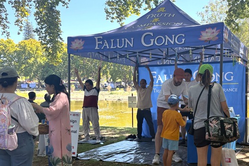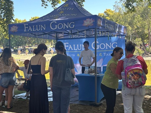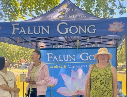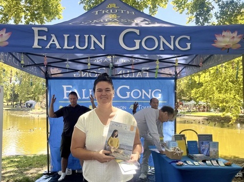 Tegan Green si è recata allo stand del Falun Gong, spiegando che desiderava imparare la pratica, e ha affermato: “Questo mondo ha bisogno di più Verità, Compassione e Tolleranza”.