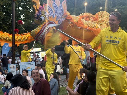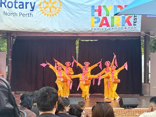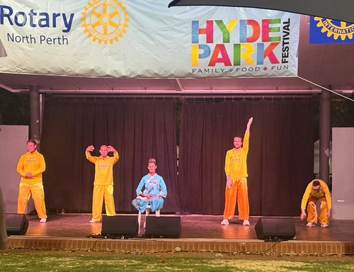 (Minghui.org) Lo scorso 1 e 2 marzo, l'annuale Hyde Park Festival si è tenuto a Perth, in Australia. I praticanti della Falun Dafa (Falun Gong) sono stati invitati a partecipare, hanno presentato i valori universali di Verità, Compassione e Tolleranza, sensibilizzato il pubblico sulla persecuzione del Partito Comunista Cinese (PCC), e hanno anche dimostrato gli esercizi ed eseguito una danza del drago, suonato i tamburini e ballato sul palco.