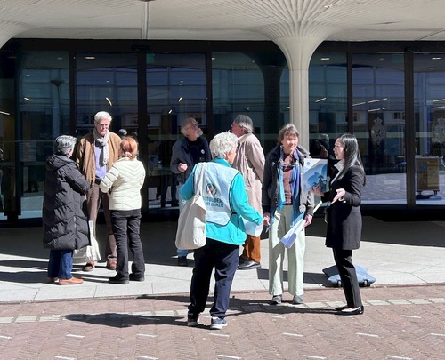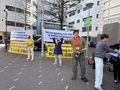 (Minghui.org) Dallo scorso 7 al 9 aprile, i praticanti hanno organizzato una manifestazione davanti alla Camera dei Rappresentanti all'Aia (Den Haag), hanno parlato con i neoeletti funzionari del governo olandese e con i membri della Camera, informandoli della persecuzione della Falun Dafa da parte del Partito Comunista Cinese (PCC), e chiedendo al governo olandese di sostenere i praticanti per contribuire a porvi fine.