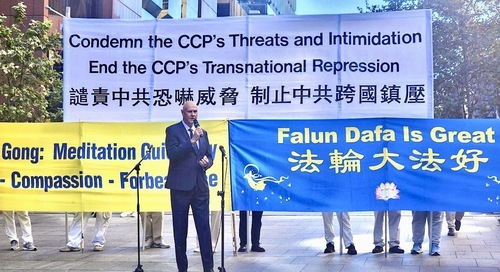 Lyle Shelton, direttore nazionale del Partito “Family First”, ha affermato nel suo discorso che tale manifestazione, che commemora la pacifica protesta dei praticanti del Falun Gong del 25 aprile del 1999, si concentra sull'attuale violazione della sovranità australiana da parte del PCC, ed è conseguentemente molto importante.