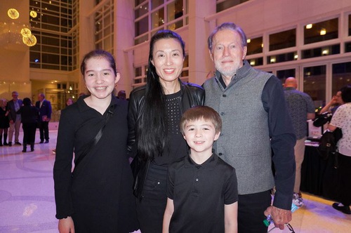 La sera del 13 marzo, l'ex ufficiale dell'esercito statunitense Mel Auernig (a destra), sua moglie Laurie e i loro due figli hanno assistito a uno spettacolo di Shen Yun a Salt Lake City, nello Utah. (Screenshot per gentile concessione di The Epoch Times)