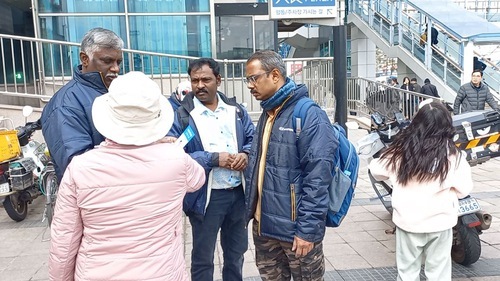 Un turista cinese di alta statura ha cercato di impedire a una praticante coreana di distribuire volantini, la quale non parlava cinese e non sapeva cosa fare. Il signor Kim ha chiesto cosa ci fosse di sbagliato.