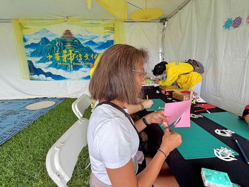 I praticanti della Dafa hanno presentato diversi aspetti della cultura tradizionale cinese, tra cui il ritaglio della carta, la calligrafia e la degustazione del tè. Molti visitatori del festival si sono fermati al loro stand e diverse persone hanno ammirato i praticanti per la loro serenità, pazienza e gentilezza.