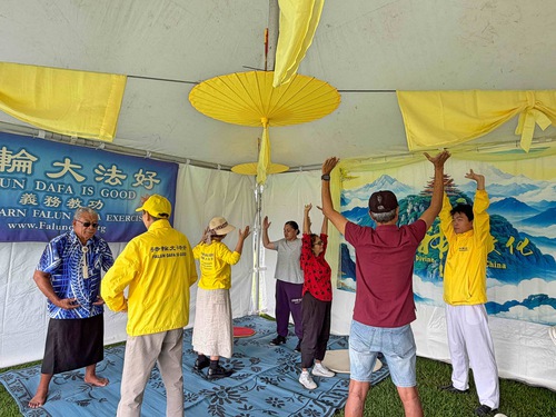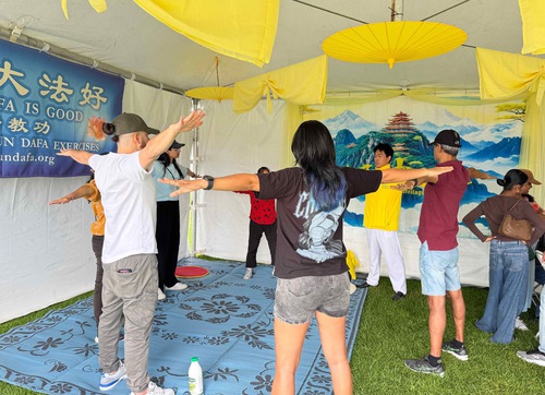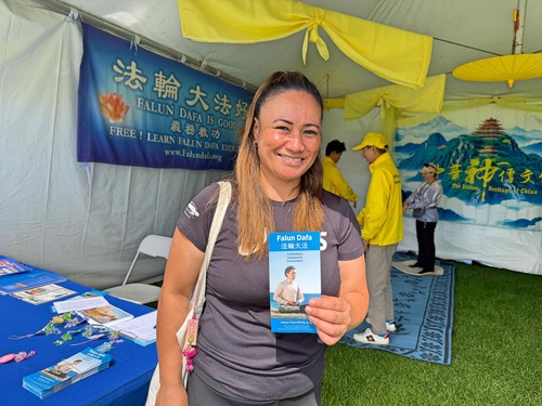 Rebecca era tra le tante persone che hanno provato gli esercizi. “È la prima volta che faccio gli esercizi [del Falun Gong]. Non li avevo mai provati prima, anche se avevo visto persone praticarli all’aperto.