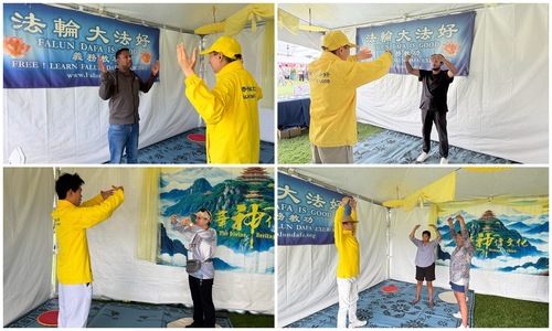 I praticanti hanno mostrato gli esercizi della Falun Dafa
